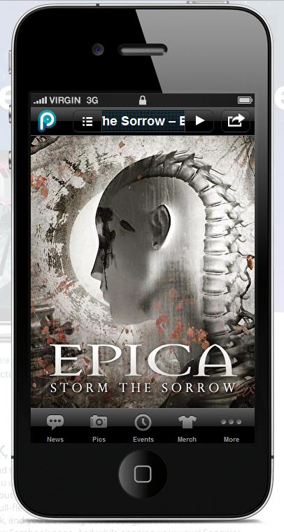 “Do you want to listen to the new EPICA single “Storm The Sorrow” while reading the according lyrics? Check out Epica’s whole discography, biography, tour dates, news, info on the new album REQUIEM FOR THE INDIFFERENT (out 09.03.12 in EU) and be able to purchase any album or merch directly on your smartphone!