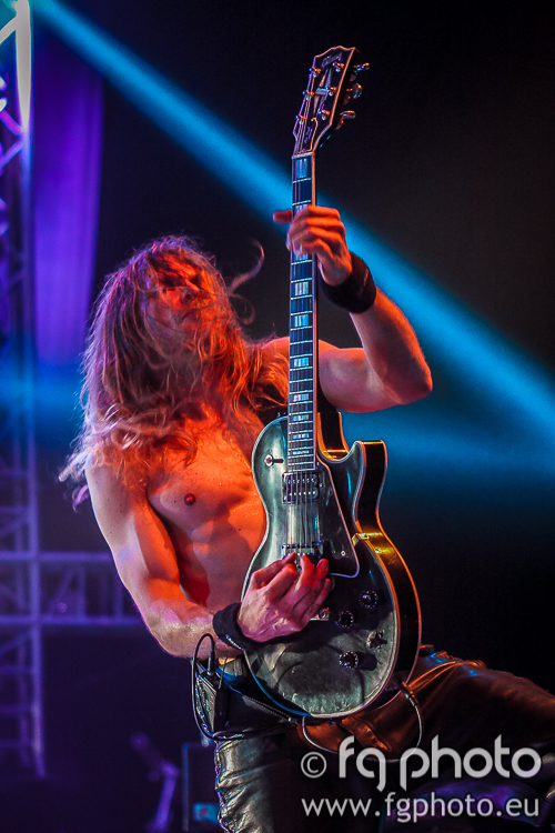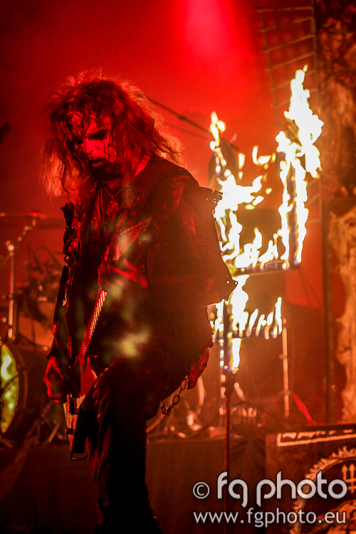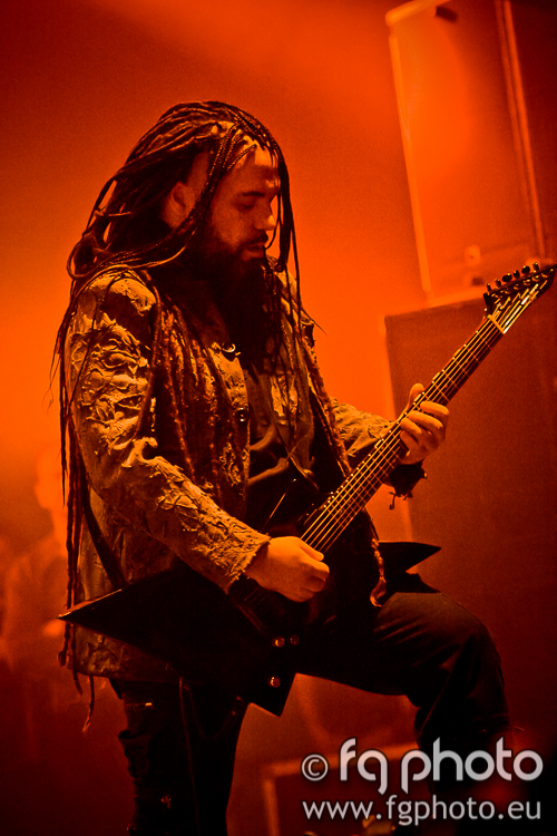 In the meantime, Swedish WATAIN were performing their obscure ritual at the Temple… Everything red, everything dark, burning candles and later inverted metal crosses. Nothing is left unplanned in this show. As Erik entered the stage and initiated the ceremony, the first song was “De Profundis” followed by “Black Flames March”, from the latest album “The Wild Hunt”. The quick and violent “Malfeitor” came next and the audience became much more agitated… The stage looked hellish, with burning crosses, tridents and other things, red lights and lots of smoke, only helped to create the right atmosphere for a WATAIN show. With Erik as the charismatic leader, the ceremony proceeded and the band traveled back a few years and slew down a bit to perform “Stellarvore”. Coming close to the end of a really solid performance, there was time to play “Holocaust Dawn” (also from the latest album). It was a shame that the “Casus Luciferi” album was not represented.