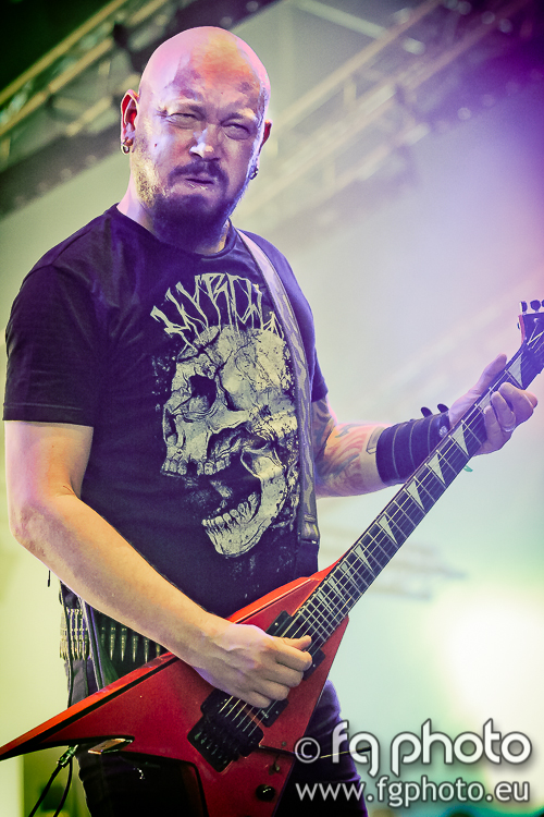 Going back to the Temple, Australian legendary DESTRÖYER 666 were about to deliver a frenetic 50 minutes of some of the best Black/Thrash that you can find, in a show that started with some minor technical issues sound-wise, but quickly became a solid headbanging frenzy. Their last song “Satanic Speed Metal” resumed it all far accurately. While dutch HAIL OF BULLETS were delivering their oldschool Death Metal at the Altar, TRIVIUM were making everyone jump at the MainStage 02. With a frontman like Matt Heafy, it was not difficult at all to have total collaboration from the audience, so a huge moshpit could be seen while the most acclaimed songs such as “Strife” or “In Waves” were performed, proving how intense a TRIVIUM show is before the Outro (taken from the videogame Final Fantasy VII: Advent Children) started to sound in the PA system. Great performance by these Americans who were making their return to French festivals. The same thing can, more or less, be said about the show that was taking place at the same time by IMPALED NAZARENE. The band gave the impression to be uncomfortable in the beginning, specially Mika Luttinen, but that’s probably due to the fact that the sound was very harsh and confusing in the first 2 or 3 songs. Things got better as the show went by.