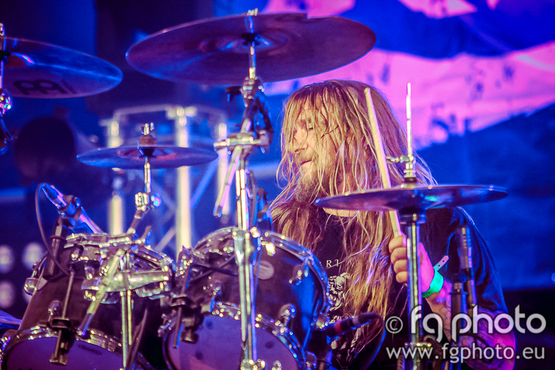 5 minutes after the crazy Finnish were done making one hell of a racket at the Temple, an artist who needs no introductions to anyone who lived in the 90’s and experienced alternative Metal/Rock music: ROB ZOMBIE. Famous for his work in White Zombie as well as a horror movie director, Rob approached every important mark of his career in this show at Hellfest: Starting with 1998’s “Dragula”, to the more recent “Dead City Radio and the New Gods of Supertown”, there was time for a drum solo (courtesy of ex-Marilyn Manson’s Ginger Fish). “More Human Than Human”, the hit single from his White Zombie days came next, followed by a song taken from the soundtrack of one of Zombie’s horror flicks “House of 1000 corpses”. To end the show, Rob Zombie planned a medley of covers (Diamond Head’s “Am I Evil?”) and other surprises, like an amazing guitar solo by guitar virtuoso John5 and partial covers of Metallica’s “Enter Sandman” and Alice Cooper’s “School’s Out”. Another band with cult status was performing at the same time: NOCTURNUS AD, which actually is not really to be considered a reunion, according to Mike Browning himself. But the most important thing, the music, is what everyone focused on. The band performed the pioneer album “The Key” in its entirety, as well as a couple of Morbid Angel songs from the early demos. It was a good show, the sound was good, but the audience was too quiet, stagnant and didn’t interact much with the band.