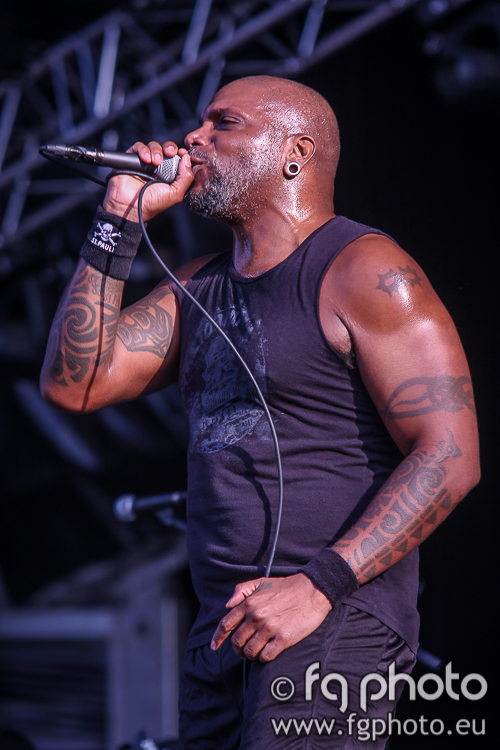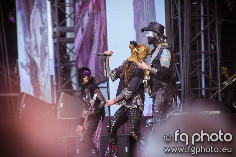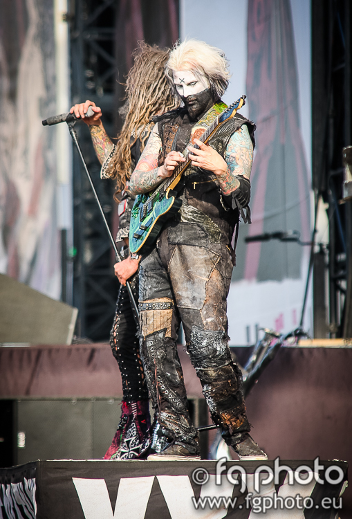 From one influential band to another, SEPULTURA came on Mainstage02 to showcase their latest album “The Mediator Between Head and Hands Must Be the Heart” by playing “The Vatican” but soon went back to the “Chaos AD”/”Roots” era with songs such as “Propaganda”, “Refuse Resist”, “Ratamahatta” and “Roots Bloody Roots”, or even older hits like “Arise”. There was also time for a totally unexpected cover (“Polícia”) from a Brazilian rock band called Titãs. With a unmerciful entrance, without wasting any time, Derrick and his friends filled the Mainstage02 with a convincing performance, which triggered the audience in an early stage of the show. Even though they use some extra percussion on stage, the sound was quite good, which helped the band to reach out to everyone clearly. Meanwhile, after some running, there was still time to catch up with one of the bands which was a promise in advance of making everyone move in the audience: TURISAS. These Finnish Folk act is known for making a mess in the crowd, making everyone jump, dance and sometimes mosh as well, and that’s exactly what happened at the Temple stage. As soon as the band jumped on stage and played the first notes, it was a non-stopping frenzy of people jumping around, like a living sea of heads and hair, flying everywhere with the commonly seen crowd-surfing fans, and all this was encouraged by the charismatic lead singer Mathias. Security people in the pit (quite helpful and friendly by the way) had no time to breathe or rest, at least not until the band left the stage after a group vow to the fans after playing their hit cover of the Boney M (yes, you read it right) “Rasputin”.