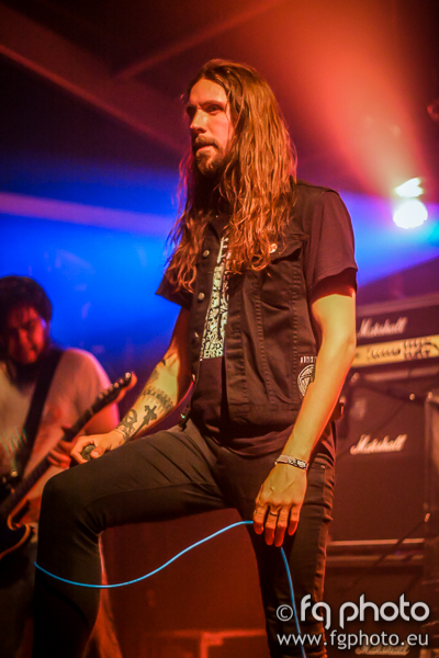 Afterwards it was CREPITATION’s turn to come on stage. This brutal death metal band from the UK, with two lead singers wrecked havoc in the crowd, with lots of stage diving as well as a huge mosh pit. Their sound, per se, is more of the same, it doesn’t add up anything new to this genre, but the band made up to it with a good performance. It is also worth to mention some confused faces in the audience when the singers would perform some weird looking singing techniques with the help of their hands…