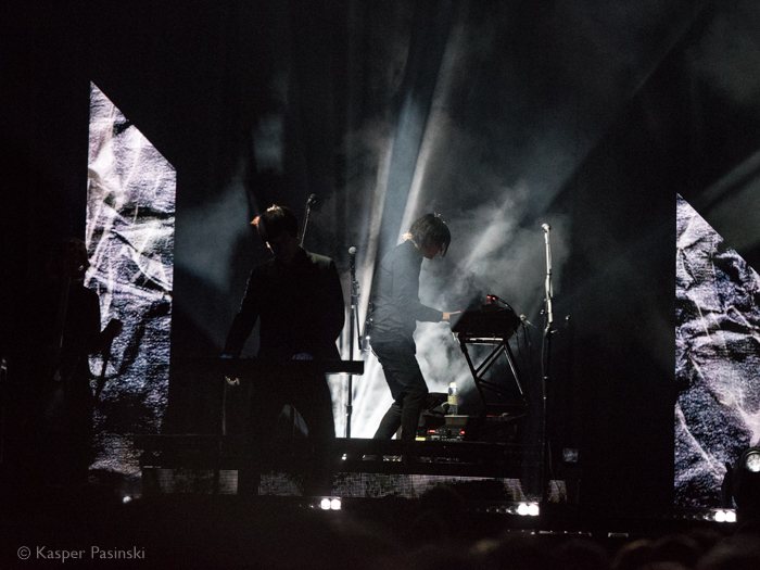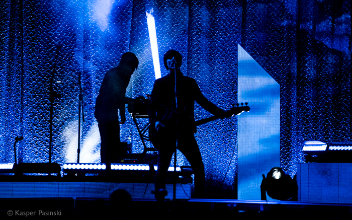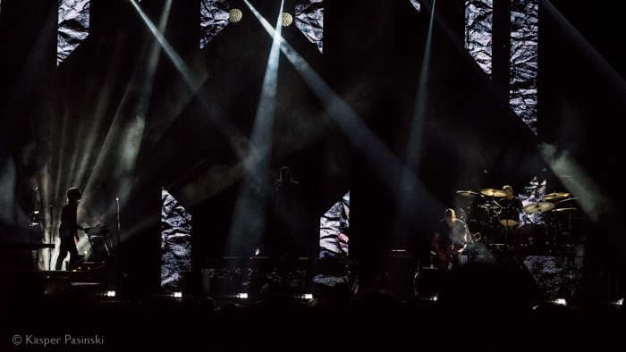 After a 30 minutes interlude it was time for the main act, the one and only A Perfect Circle. Initially it felt that Chelsea Wolfe was performed with minimal lighting but with the first beats of ‘Eat The Elephant’ I was about to realize how wrong that was. The piano together with the drums teared down the chatting noise in the arena. After few moments the characteristic voice of Maynard James Keenan was heard. Interestingly, until the end of the first song it was not clear if he was singing from the stage or hiding somewhere. The big secret was revealed when the first notes of ‘Disillusioned’ were accompanied by minimal blue backlights that revealed the silhouette of the vocalist, located on a special stand at the back of the stage. A Perfect Circle performed song after song without unnecessary breaks, continuing their theatre of shadows. The setlist continued with older tracks like ‘The Hollow’ and ‘Weak and Powerless’. Shortly after they refocused on their latest release with one of the best single songs, inspired by Douglas Adams novel, ‘So Long, and Thanks for All the Fish’. Later in the show we could hear more of their older material like ‘Rose’, cover of ‘(What’s So Funny ’bout) Peace, Love and Understanding’ sang by Billy Howerdel and ‘3 Libras’. The final moments of the evening started with one of the bands biggest hits, ‘Judith’, followed by a cover of AC/DC ‘Dog Eat Dog’. And this was the first time the fans could really see MJK and not only his silhouette standing behind the band. They closed the night with ‘Delicious’, which deserved the vocalist comment: ‘now you can take out your f… iPhones’. Note that A Perfect Circle has been extremely strict about photos on this tour, and this was the first time this evening he entered the front part of the stage.