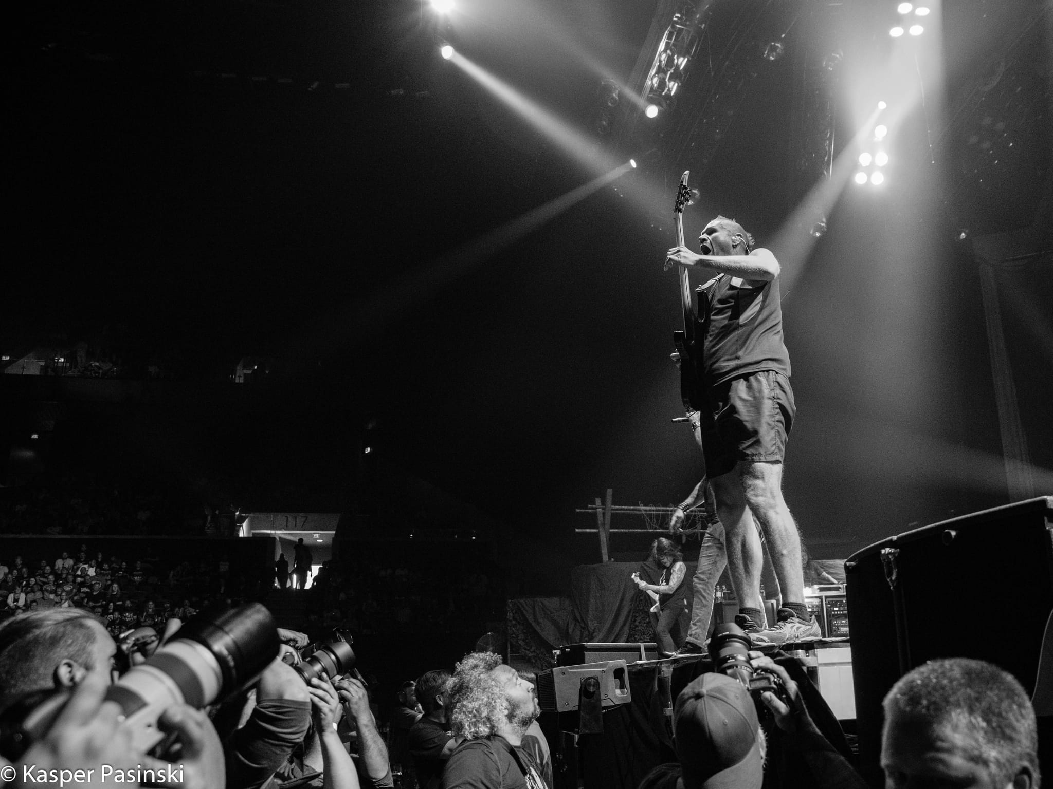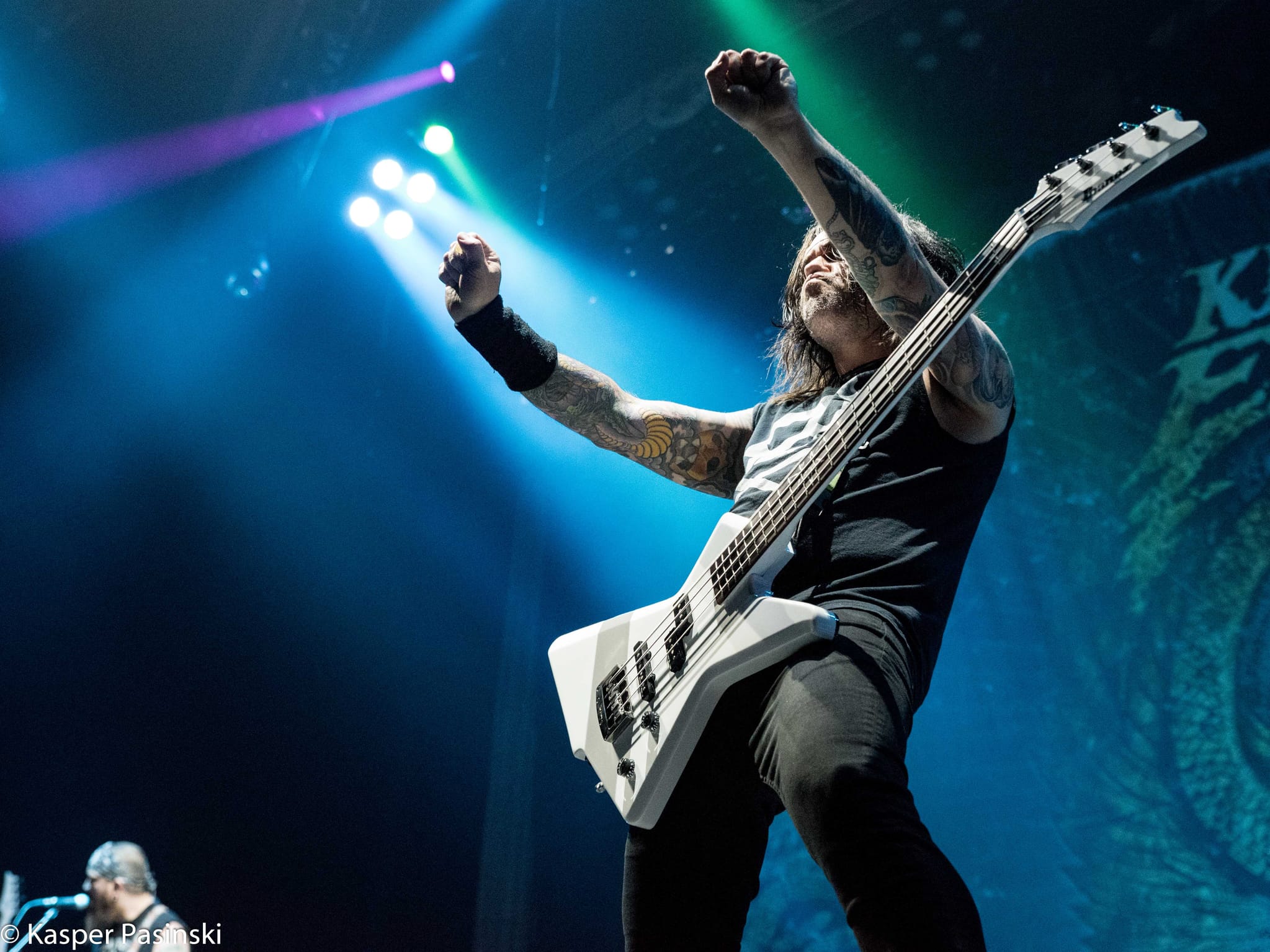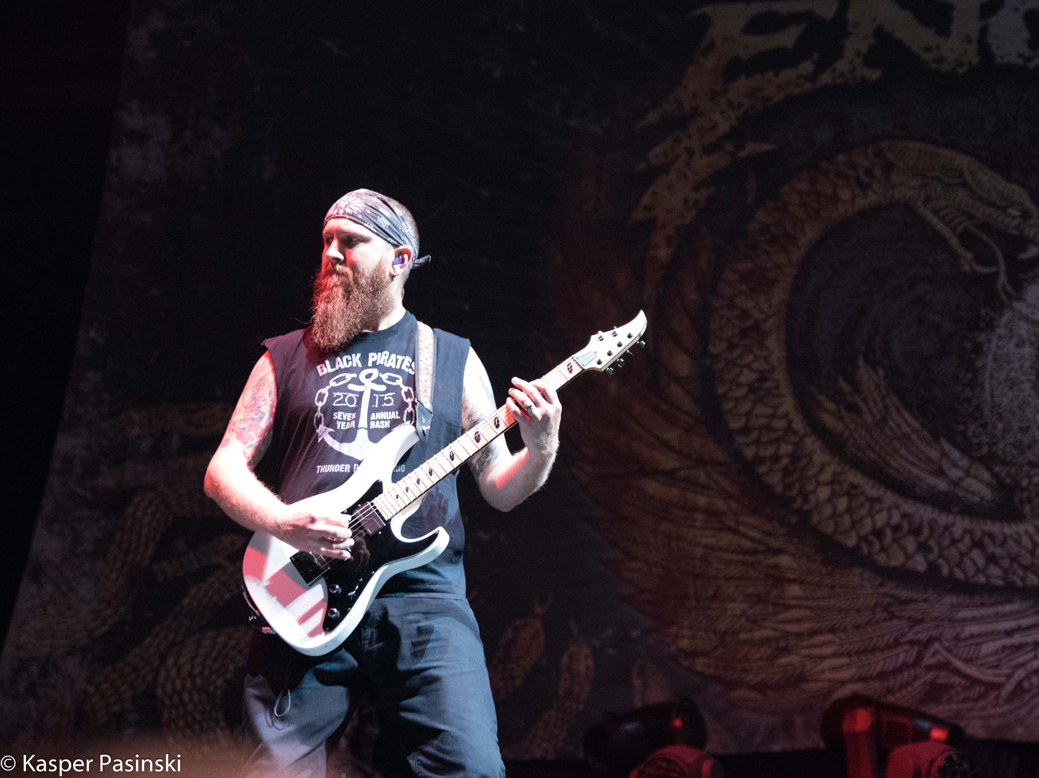 The show started at 10 minutes to 8pm (and not at 2 minutes to midnight) in almost full Royal Arena. The opening act were presented by Killswitch Engage. This band was full of energy, and did their best to warm up the crowd gathered fans who were already impatient for what would come next. It is no easy task being the opener for the Iron Maiden – these fans only want the main act! However, Killswitch Engage managed to have some success and gathered few cheers during their set, in spite of – as expected – most of the fans were not really familiar with their music, given that most of that crowd was more into classic heavy metal, and not really into metalcore. That was proven fact, when the most well received moment of the Killswith Engage’s set was the cover of Dio’s “Holy Diver”. Older fans were feeling more comfortable with the song they do know, and payed back to the band with loud applause. During a 45 minutes long set, the band did their best to entertain the public despite being a some-what arduous task.