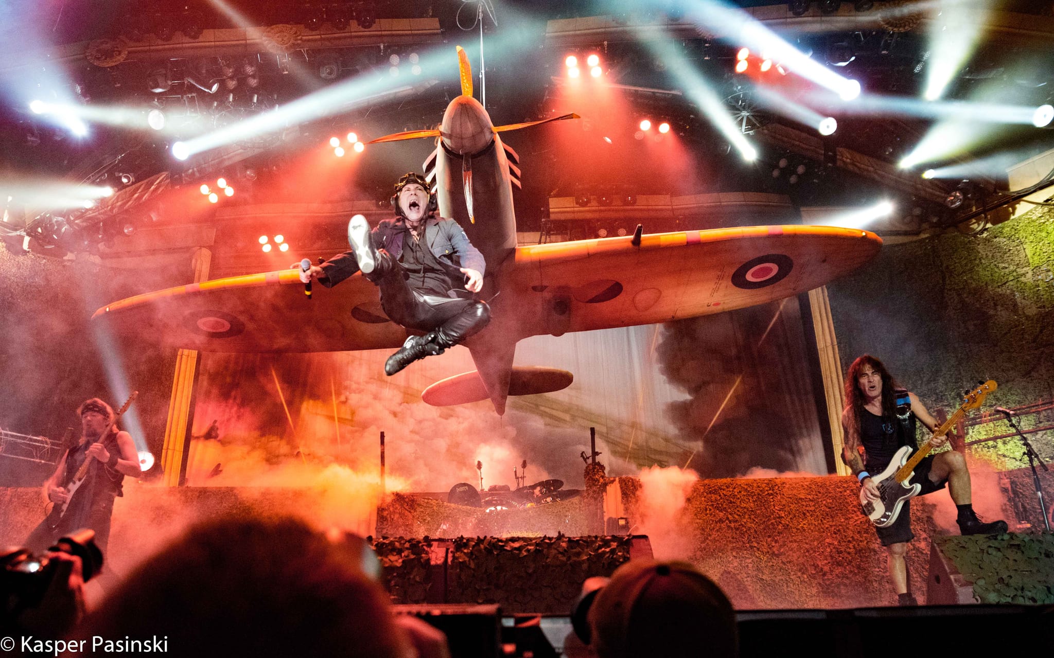 Just after 9pm It was the time for the Irons! First we have heard an intro with the UFO’s song “Doctor Doctor”, followed by the Winston Churchill’s speech. This was the moment of calm before the thunders and storm! Iron Maiden soon rushed to the stage full of energy, as always, while playing the first notes of “Aces High”, with a huge Spitfire hanging about their heads. Bruce was kicking and jumping in a pilot hat and goggles, to match the scenery. So far, all was, as expected, on the highest possible level. Like we didn’t knew that the band can deliver one hell of a show. Following up, we stayed in the II world war theme with “Where Eagles Dare”. In here, Bruce Dickinson was running on the top of the stage wearing a white jacket like Clint Eastwood and Richard Burton, while heading to the Castle Adler, all with the big print of burning cable car in the background.