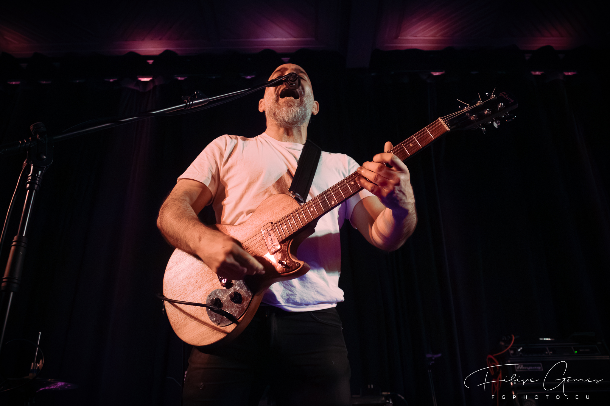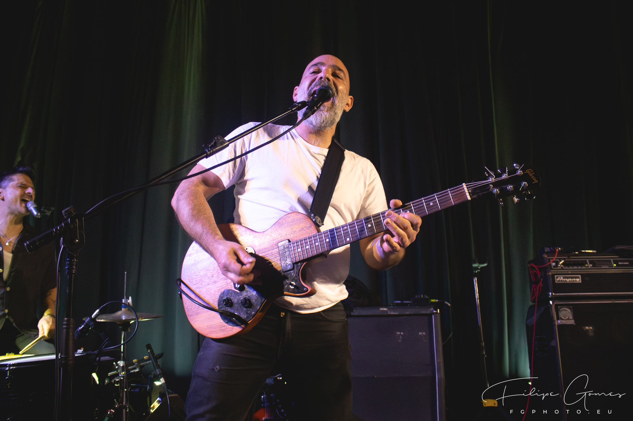 Shortly after 6:30 PM, André Henriques, Cláudia Guerreiro, Hélio Morais, and Rui Carvalho stepped onto the stage of the darkened Salão Brazil. What unfolded over the next hours was a masterclass in indie rock shaped by introspection and release — the sound of a band that, over 23 years, has become one of the defining pillars of Portuguese alternative music.