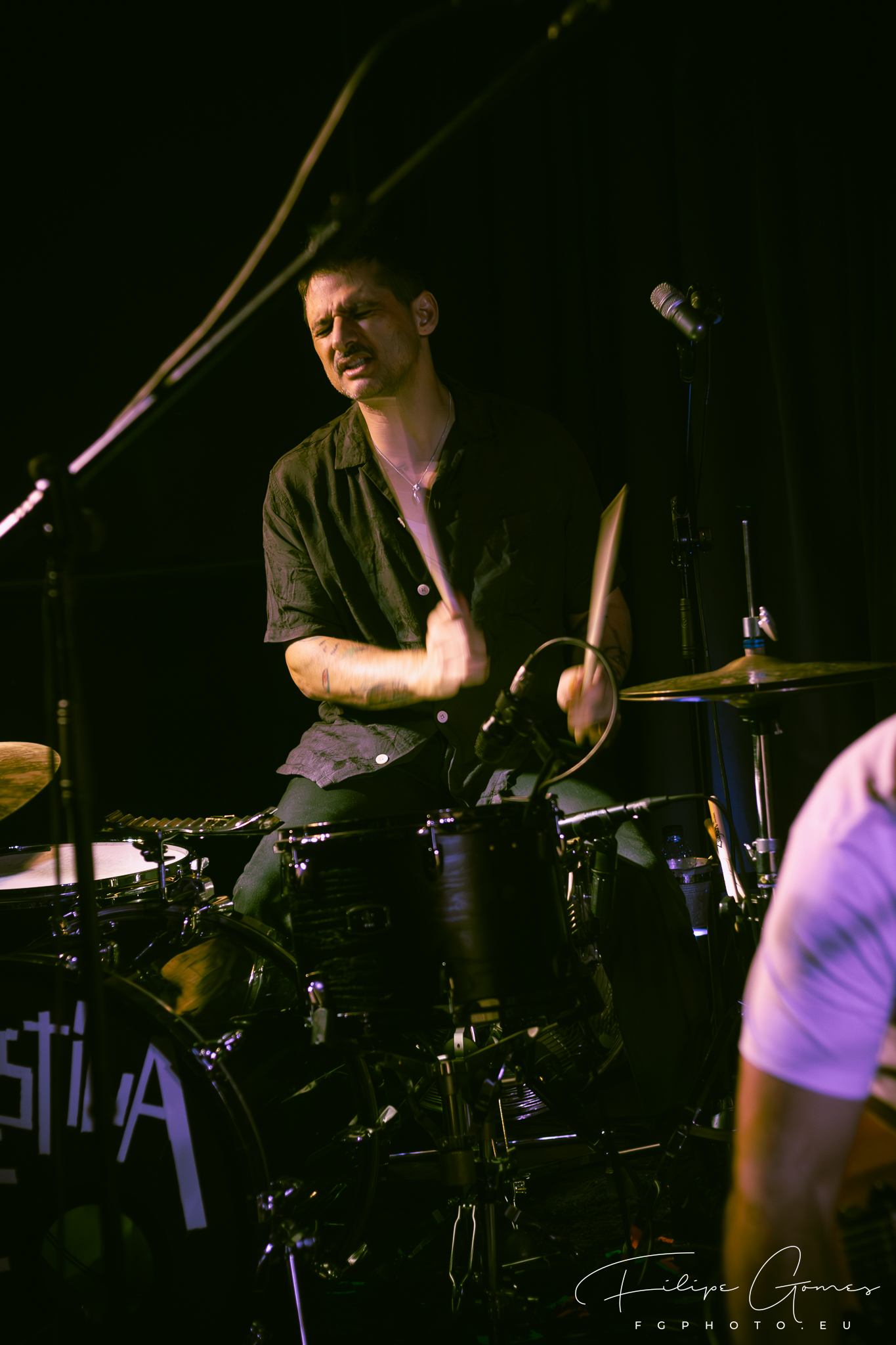 A brief spoken moment broke the musical flow, as André encouraged civic engagement and participation in the presidential elections taking place that very day. Then came “Faz-se de Luz”, one of the band’s short, explosive bursts — a flash of adrenaline designed to clear the air before the return of longer, immersive compositions built from the layered textures that define their sound.