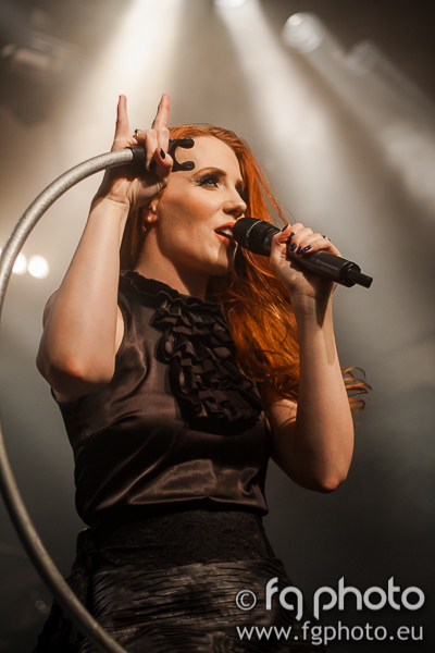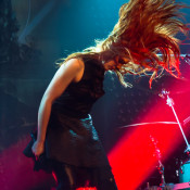 Last, but not least… headliners EPICA showed up on time, one by one, after a pretty long intro. Simone Simons, the bands charismatic frontwoman was, of course, last. Even though they had been in the country a couple of months before, that didn’t prevent Hard Club to be close to full. With the latest “The Quantum Enigma” album to introduce, what better way to start the show just like the album starts? The first 3 songs were like that, followed by the hit single “Unleashed”. The sound was alright, but could be better, specially Simone’s voice could hardly be heard at times… “Storm The Sorrow”, the previous album’s single ensued. Just like the guys that played before, this band’s performance seems tight and thought through until the last details, making the whole band interact with the audience, making people cheer, asking questions and taking small interludes here and there. “The Obsessive Devotion” was a great song, definitely a highlight. So was “Cry For the Moon”, a more quiet song where Simon can shine even more… Ariën, the band’s drummer presented everyone with a great and entertaining drum solo before the last few songs. “The Fifth Guardian” was the final interlude introducing “Chemical Insomnia” and “Unchain Utopia” from “The Quantum Enigma”. The show ended with the band’s classical song “Consign To Oblivion”.