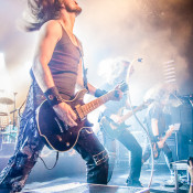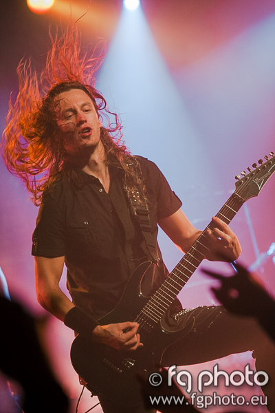 The first band was DAGOBA, a french groovy band in charge of starting the hostilities. Apparently not very known to the Portuguese audience, a conclusion taken based on both the amount of people and reaction in-between songs. Either way, the musicians gave all they had in an energetic show, where no one can complain that they put an effort on cheering up the people watching the show. Powerful grooves echoed in Hard Club’s Room 1, with a special mention to Shawter’s vocal skills and attitude. The highlight of the concert was the song “Black Smokers”. A band which deserves more attention, specially from people who like Fear Factory and similar acts.
