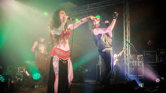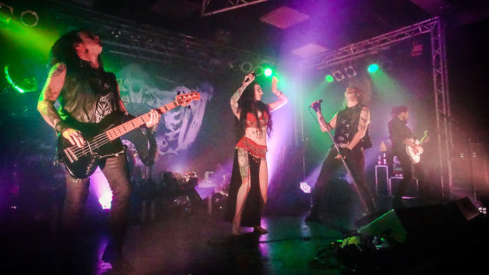 Eleine, Swedish symphonic gothic metal, were the first band to come upon stage. The crowd was still scarce when they started, maybe due to the fact that they are a young and still almost unknown band. Their performance was mainly focused on their eponymous debut record from 2015, and despite their best efforts, especially from the front woman, the crowd remained somewhat apathetic. They finished their gig with a new single, released this year, “Break Take Life”, a song that seemed to cheer up the audience a little bit, that had started to arrive to see the next band.