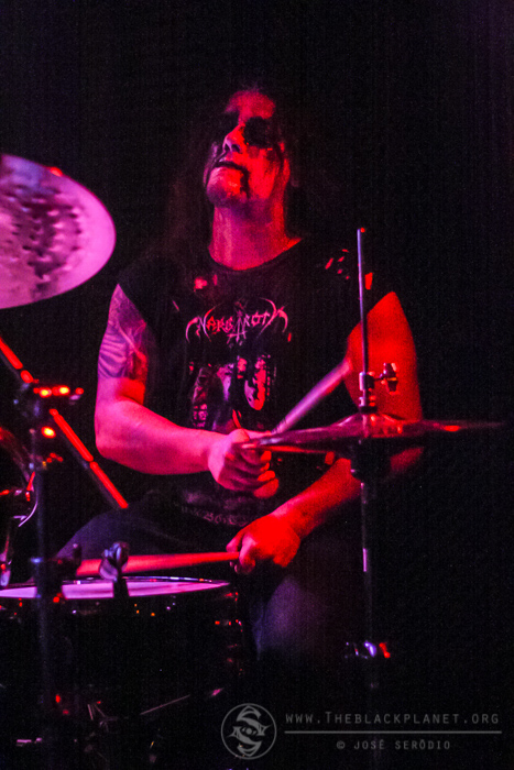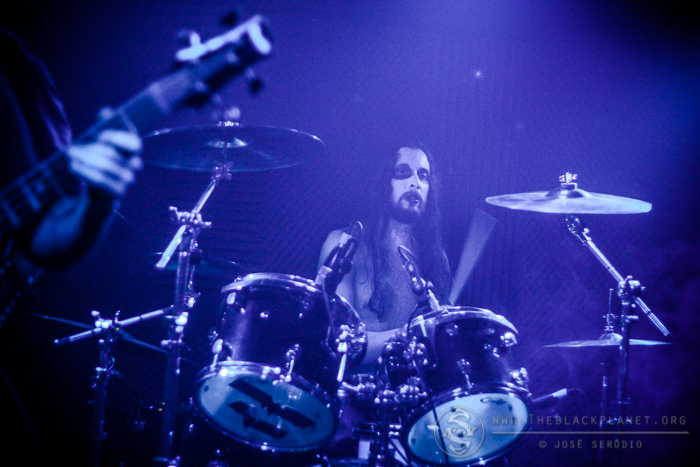 Next, hailing from Georgia, was the depressive black metal act Psychonaut 4. Playing for the first time in Portugal, a lot of fans were anxiously awaiting for this gig. Graf von Baphomet, Drifter, Glixxx & Co opened the set with ”Parasite” after a loud welcoming applause. Graf and Drifter were the most expressive members during the performance putting everything they had into it. Lord Lokhraed (Nocturnal Depression) joined them in the middle of the concert to perform a song resulting in a powerful ingredient to the band’s stage presence. ”Serial Lier”, ”Moldy” and ”La Deca[Dance] II” were some of the songs in the setlist. The fans seemed to know all of them. Lastly, they finished with ”Antihuman” leaving the stage with under a cheering and loud applause. For sure a concert to remember.