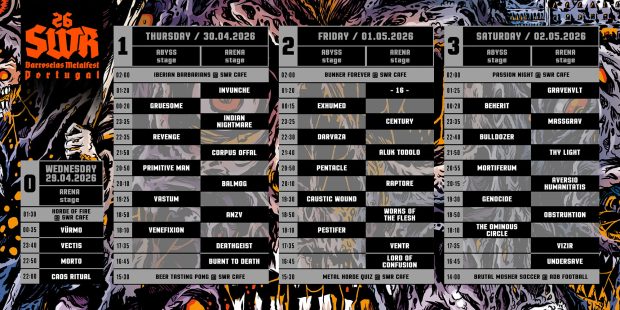 The organisers of SWR Barroselas Metalfest 2026 have released the complete daily schedule and stage timetable for the 2026 edition, confirming the running order for all four days of the event. The festival will take place in Barroselas, Viana do Castelo, between April 29 and May 2, 2026.