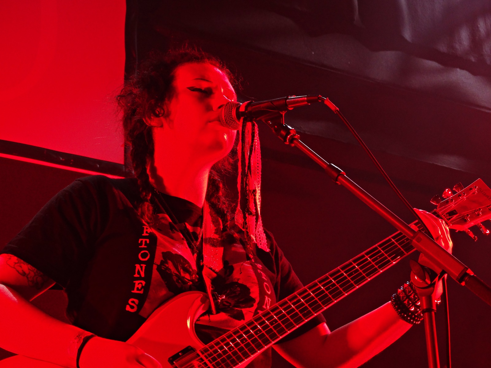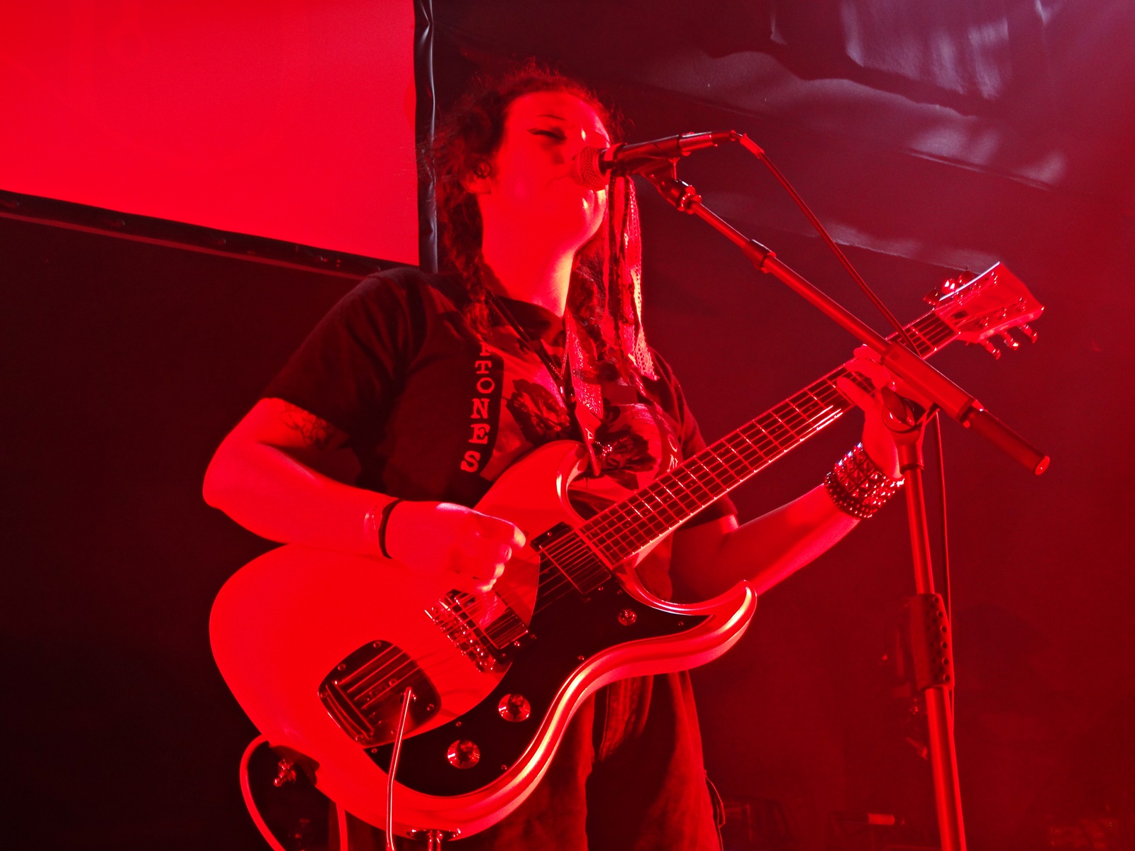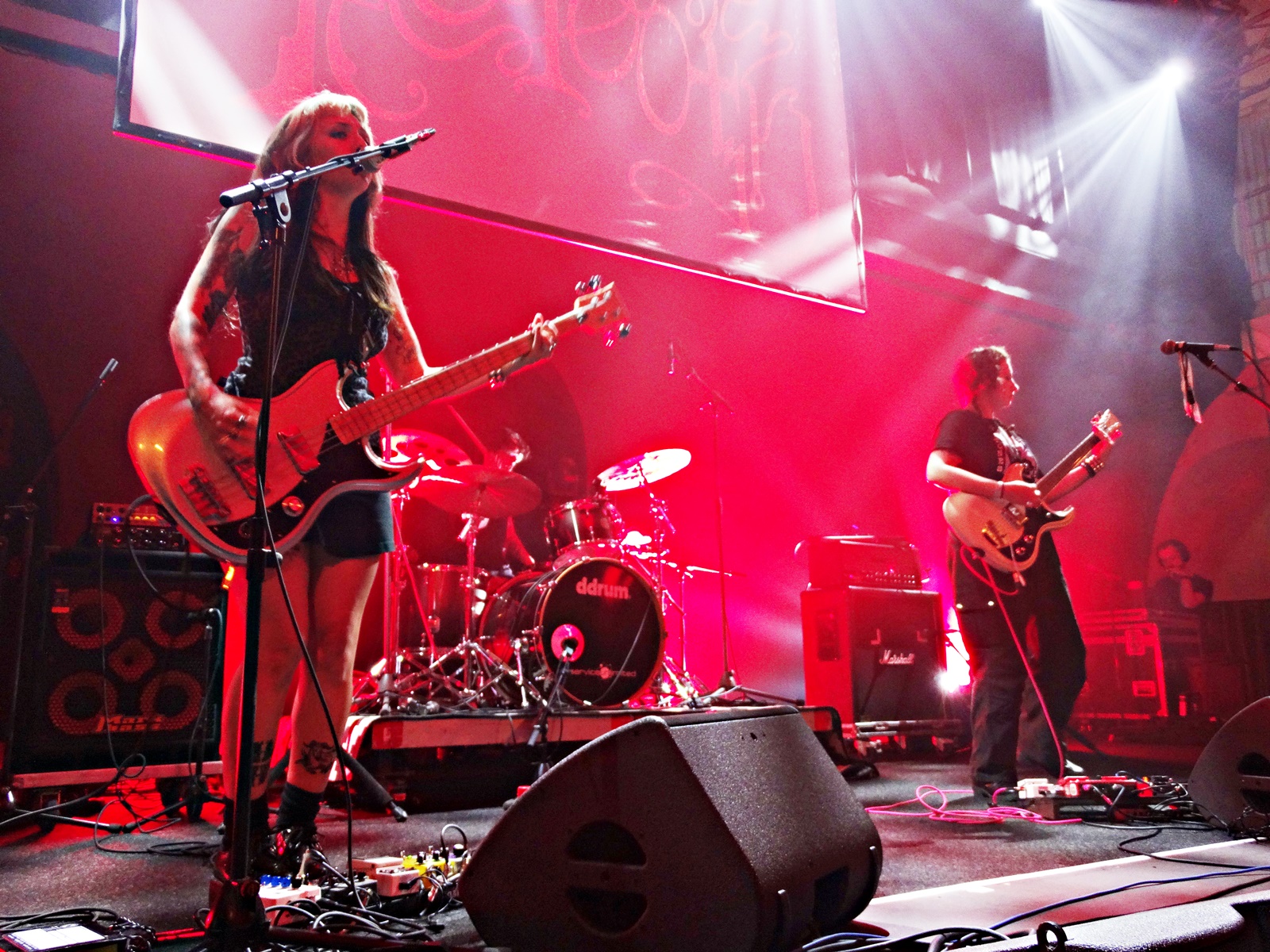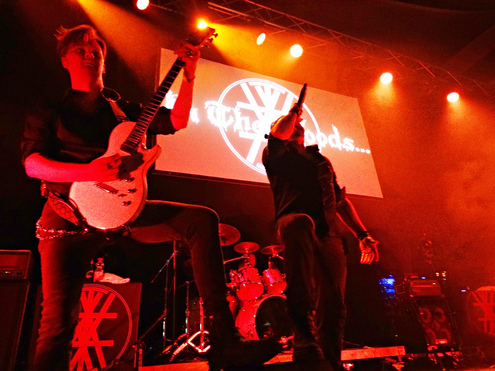 The second-to-last band was Midas Fall, a Scottish female rock duo founded in 2008, but which features more members live. This duo combines elements of electronica, post-rock, and alternative-goth, along with a great vocal performance. Throughout this second-to-last concert, we noticed that more people started entering the building, and the atmosphere of the concert began to get warmer. We also noticed, judging by the t-shirts of the newcomers, that the audience was more into metal than rock; even so, they applauded Midas Fall when they finished. They were there for the last band of the night: In The Woods.