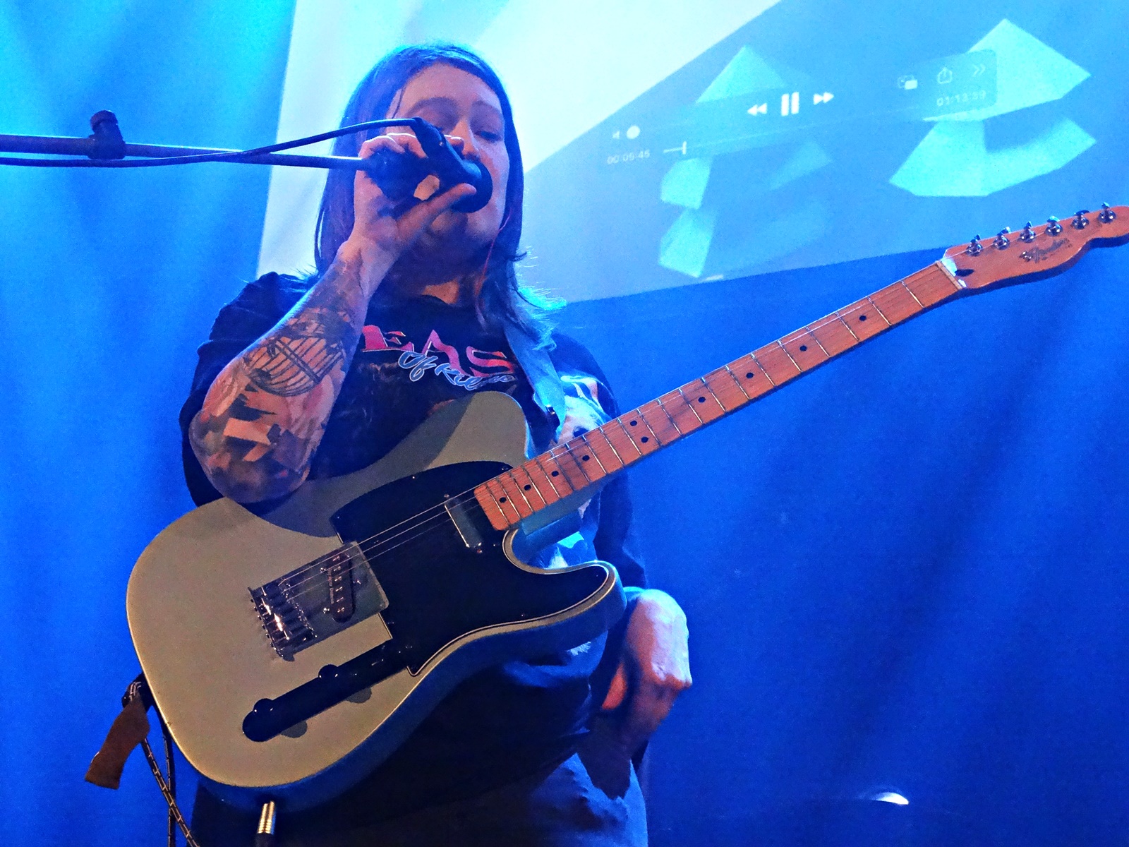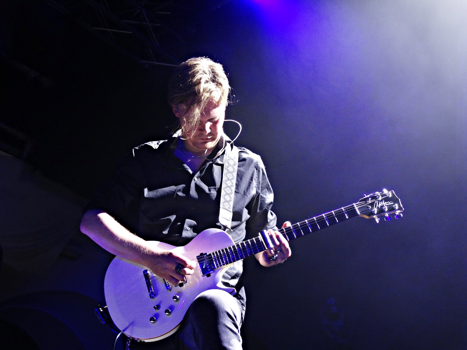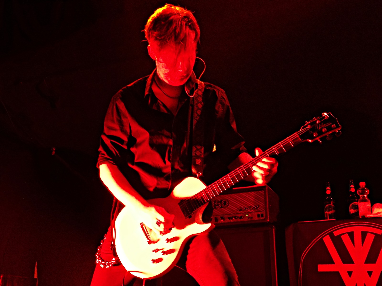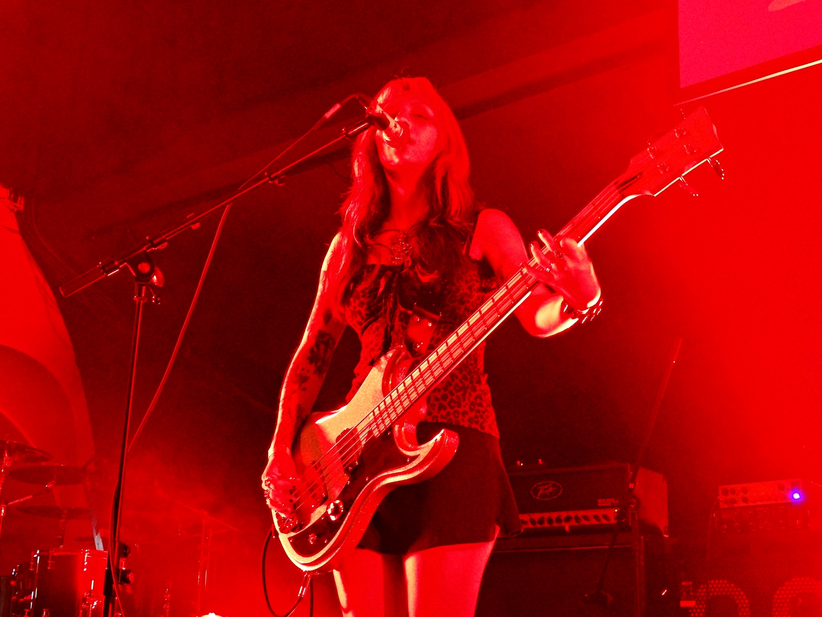 The second-to-last band was Midas Fall, a Scottish female rock duo founded in 2008, but which features more members live. This duo combines elements of electronica, post-rock, and alternative-goth, along with a great vocal performance. Throughout this second-to-last concert, we noticed that more people started entering the building, and the atmosphere of the concert began to get warmer. We also noticed, judging by the t-shirts of the newcomers, that the audience was more into metal than rock; even so, they applauded Midas Fall when they finished. They were there for the last band of the night: In The Woods.