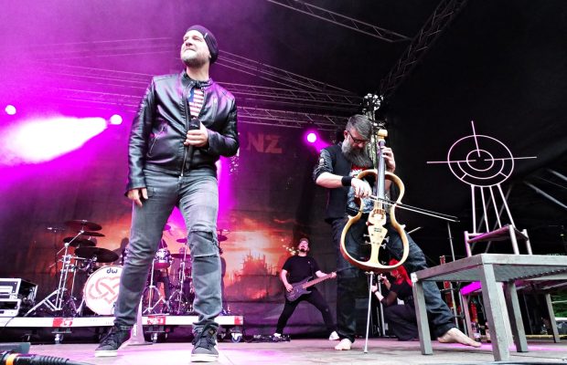 Being a band formed in 1997 with an extensive discography, the setlist featured a bit of music from each album. They opened with a cover of “Rightful King,” setting the tone for a pleasant afternoon. The setlist continued with “Nur für Dich,” “Risiko,” “Operation,” “Black Is the Color,” “Musenkuss,” “Schöne Augen,” “Radio/Video” (the first of two System of a Down covers they played), “Urinstinkt,” “Contenance,” “Murders in the Rue Morgue” (an Iron Maiden cover), “Time – Zeit,” “Welthentrubel,” “Kein Land so schön,” “Der Luftschiffharpunist,” “I Get Used To It,” and closed with their final System of a Down cover, “Chop Suey!”, which got everyone jumping.
