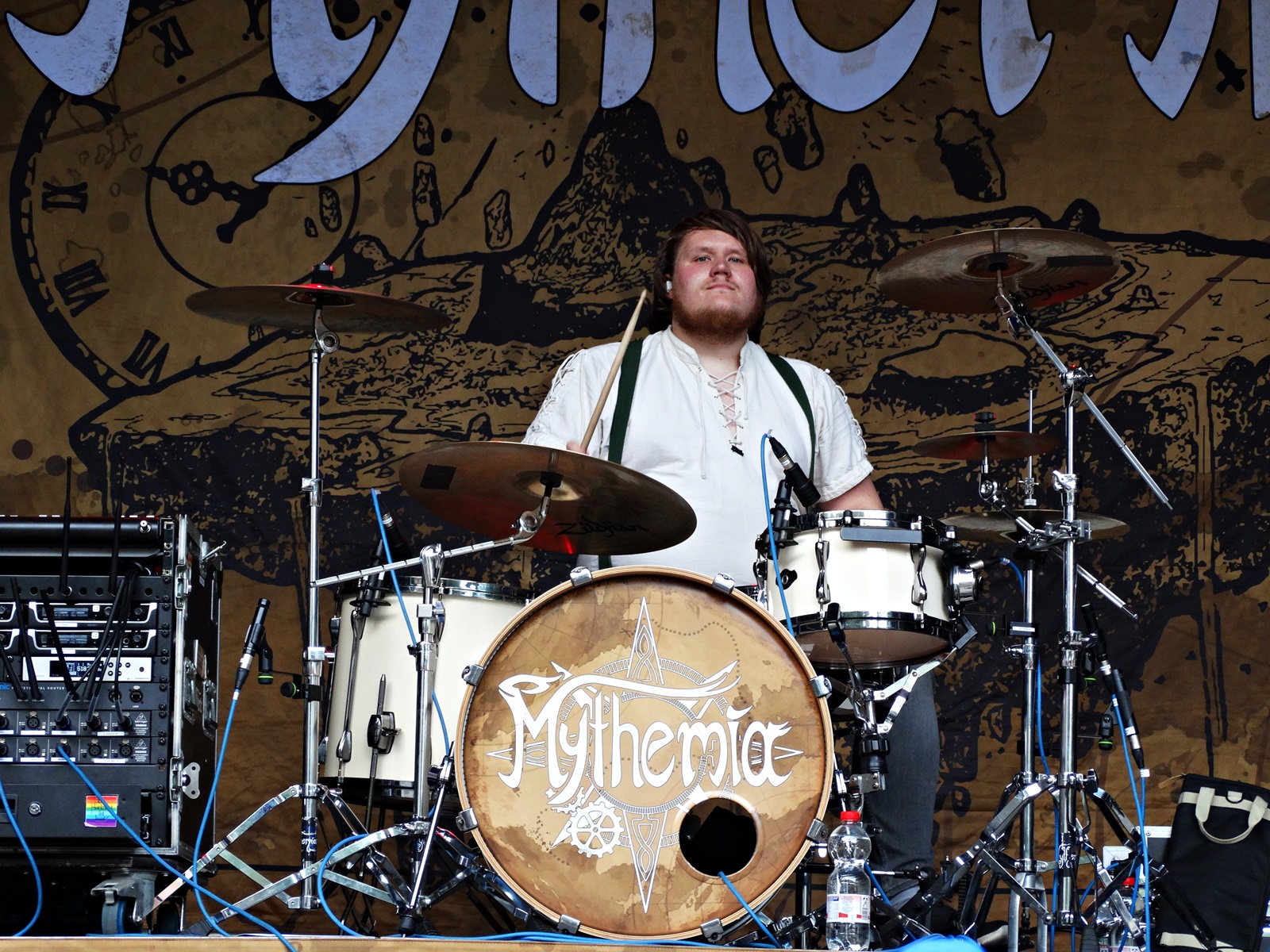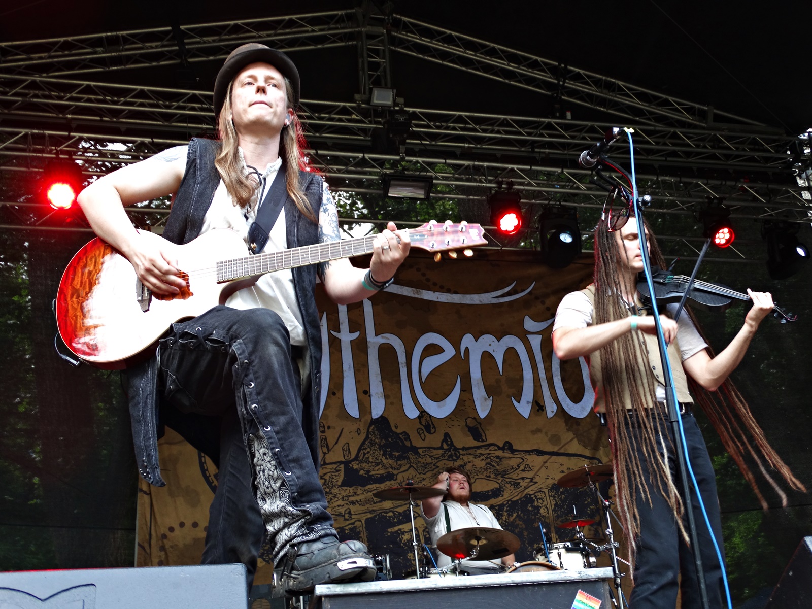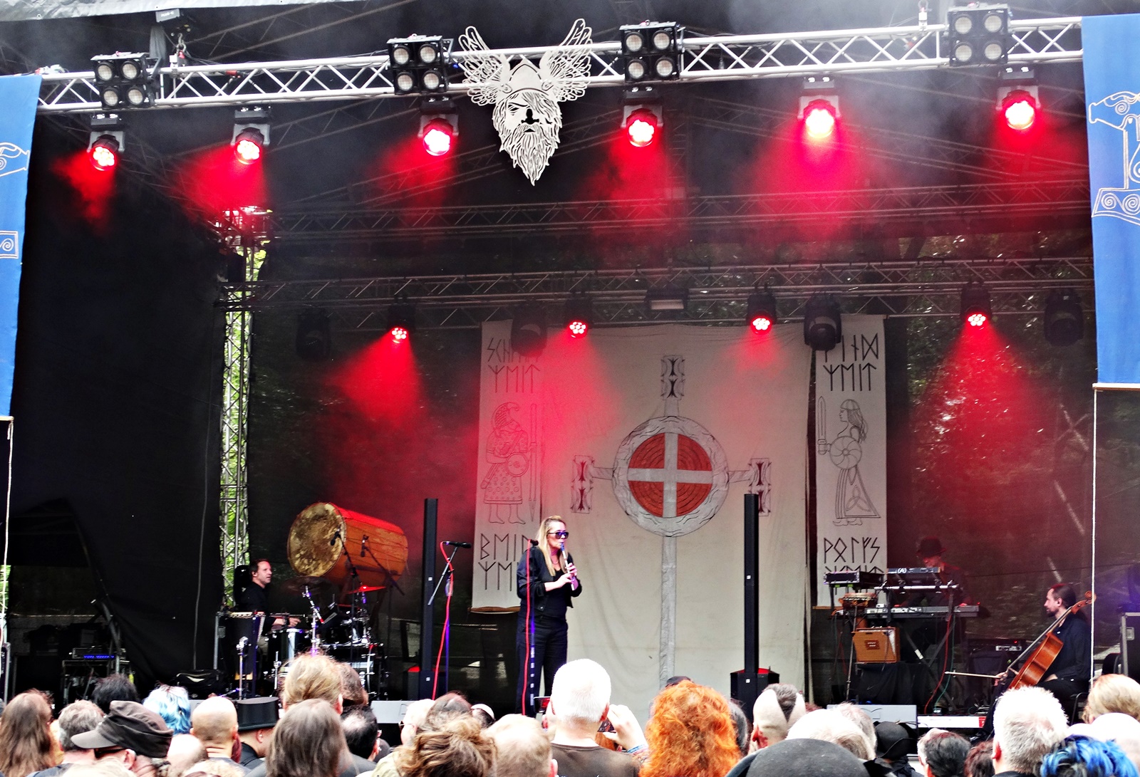 The next band to play on the first day in Heidnisches Dorf was Mila Mar, a German alternative band that blends rock, folk, gothic, and electronic music. With 31 years of existence and the charismatic vocalist Anke Hachfeld at the helm, this group delivered an exemplary concert, where the more ethereal passages offered by the cello were quickly replaced by more upbeat music thanks to the percussion section and electronic sounds. During the previous Mythemia concert, more people arrived, and judging by the reaction of those present, this seems to be one of the most anticipated bands.