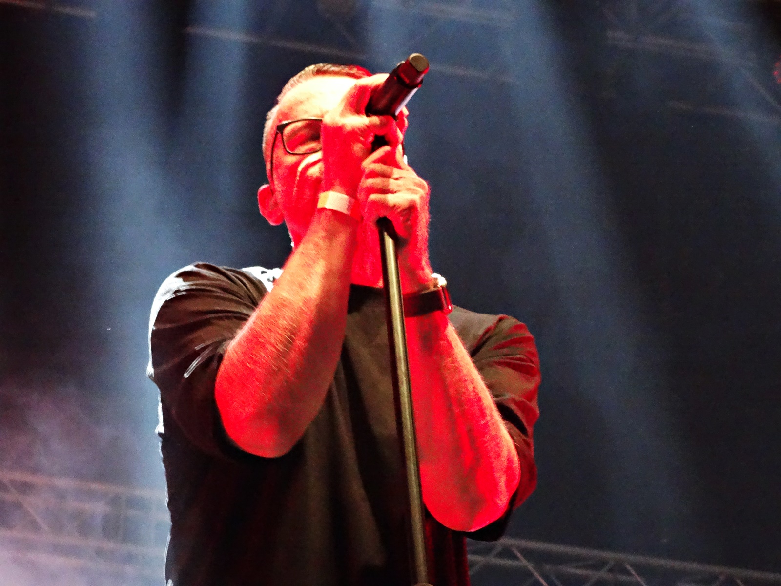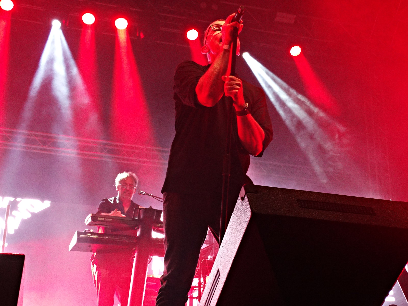 First, I must say that I found the sound too loud throughout the Camouflage concert. And I think many other people had the same thought, as many left the venue and stayed outside in the back to listen to the concert. And I think they lost a bit of empathy with the audience because of that.