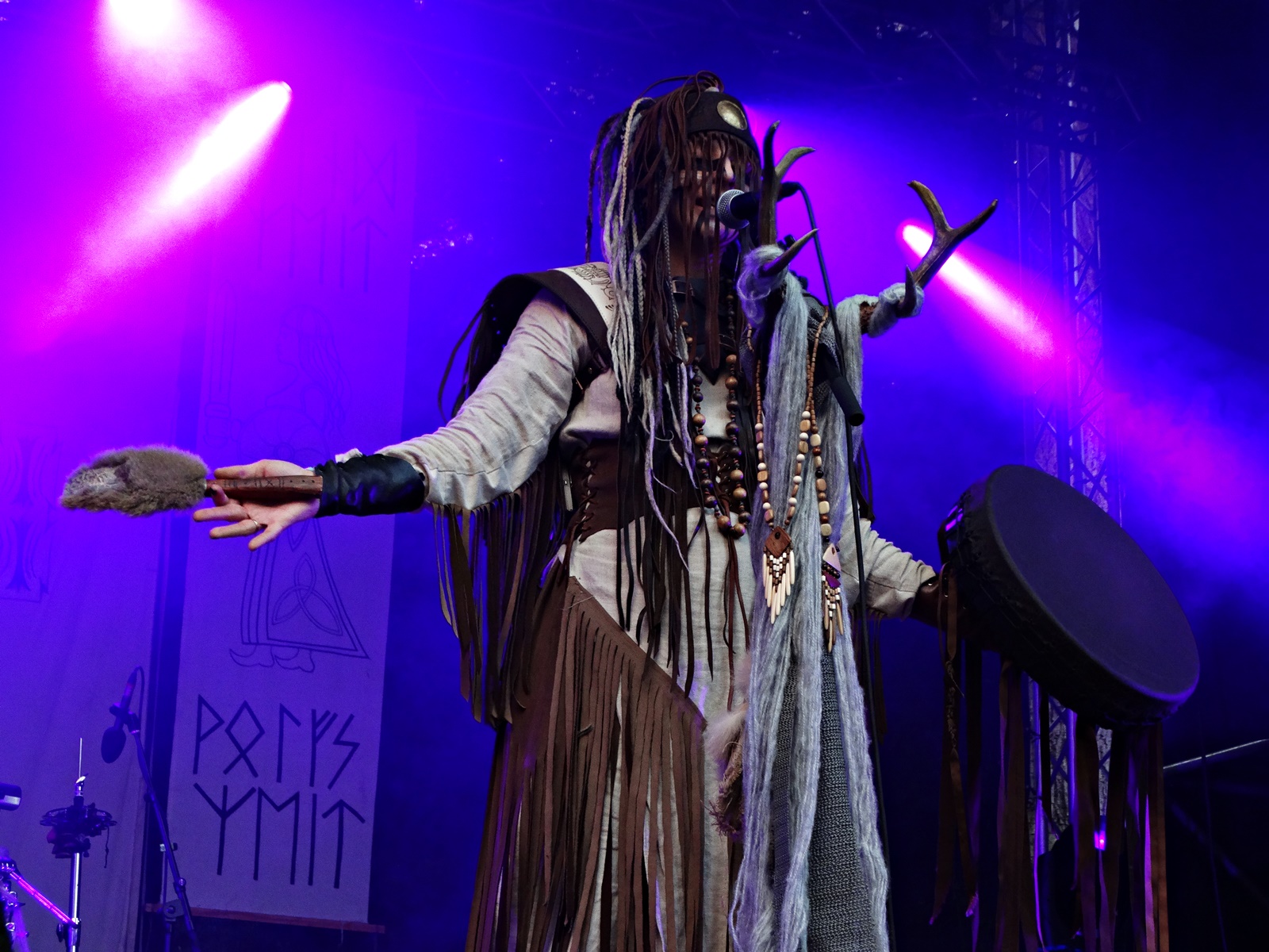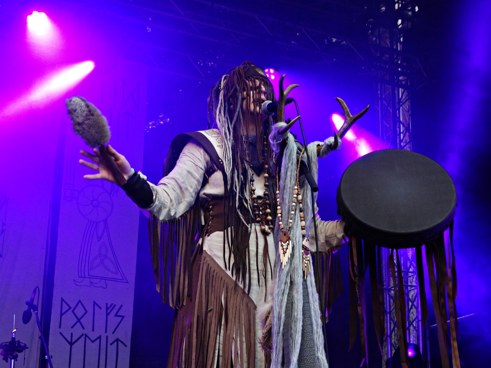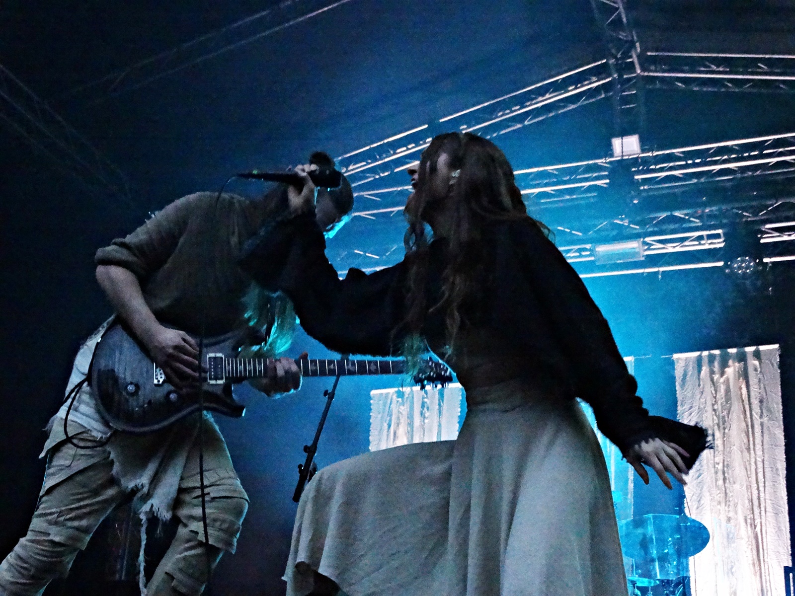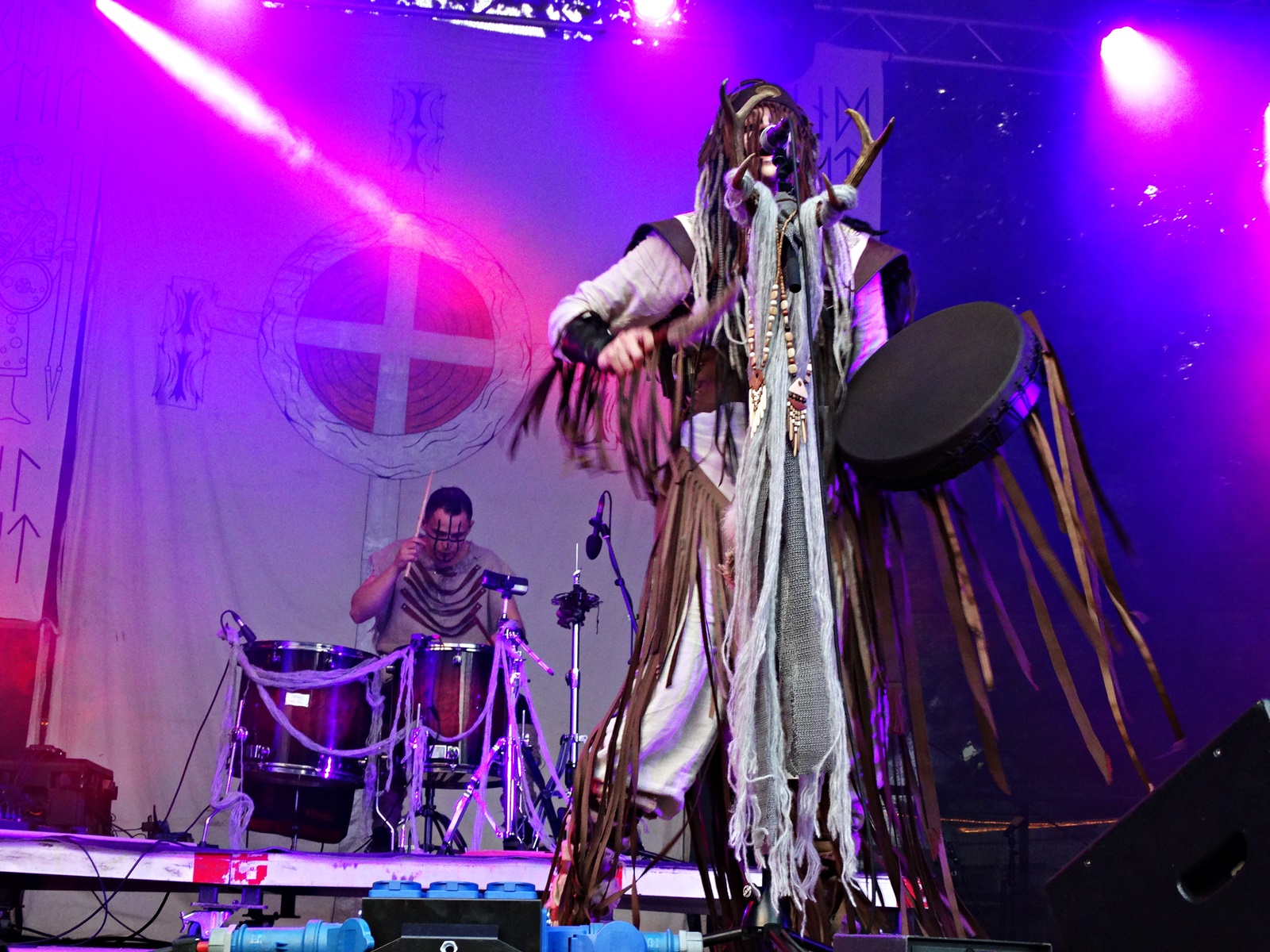 The last band from the pagan village this day was Nytt Land, a Nordic folk band from Siberia composed of two members, husband and wife, who, after signing their last two albums with Napalm Records, have been gaining considerable prominence at various folk and pagan festivals across Europe. The music can be considered shamanic, ritualistic, and hypnotic. Vocalist Natalya even ventures into throat singing while playing frame drums.