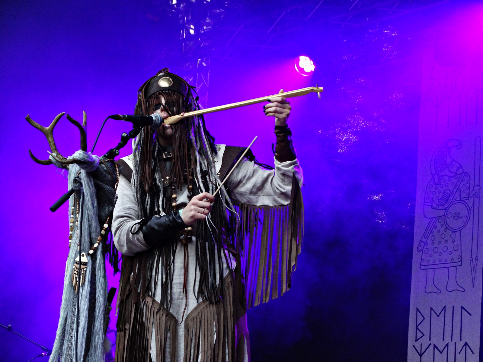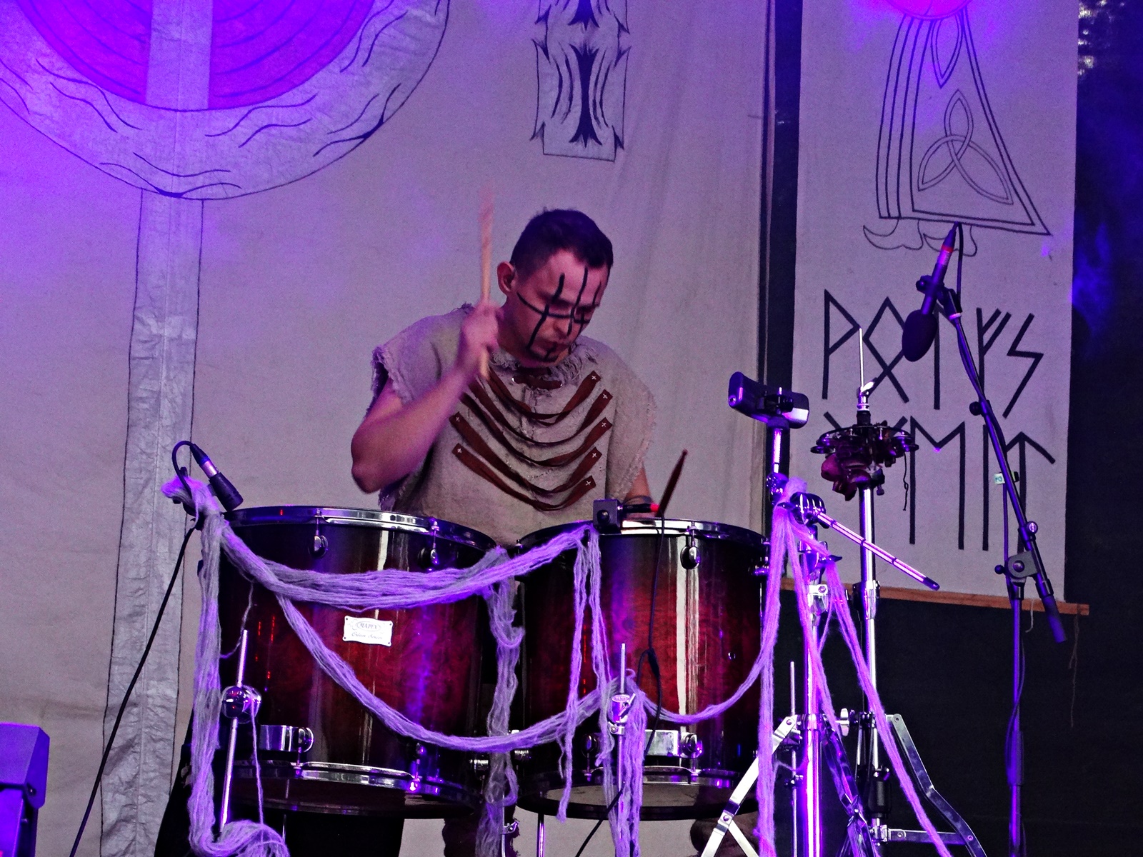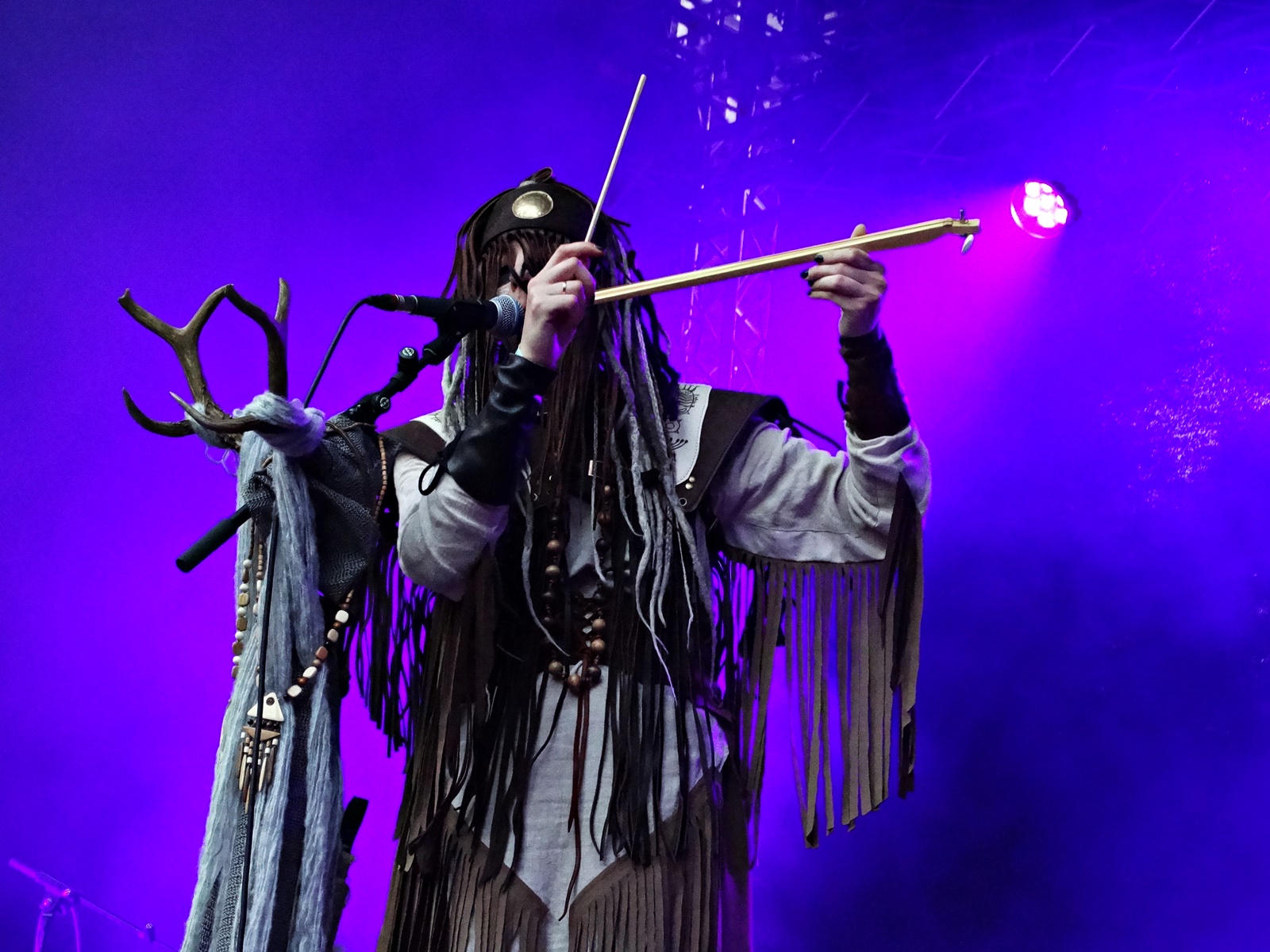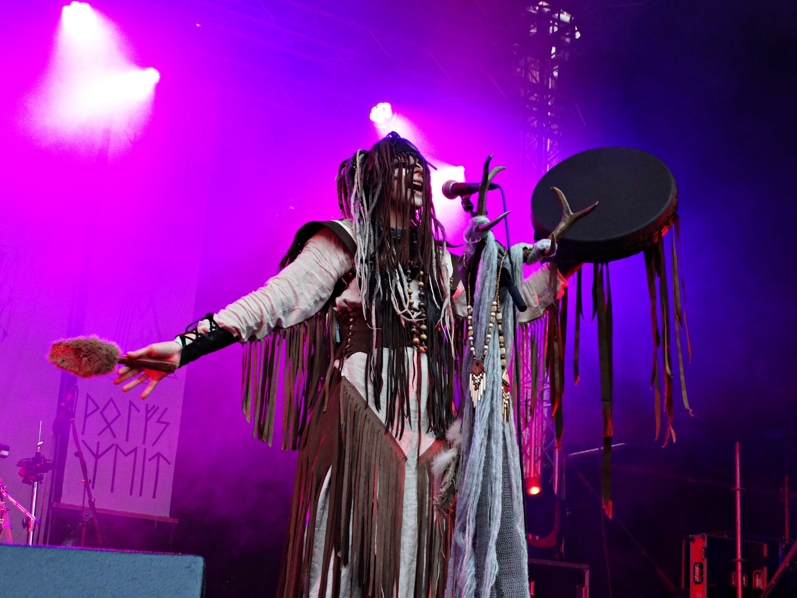 The last band from the pagan village this day was Nytt Land, a Nordic folk band from Siberia composed of two members, husband and wife, who, after signing their last two albums with Napalm Records, have been gaining considerable prominence at various folk and pagan festivals across Europe. The music can be considered shamanic, ritualistic, and hypnotic. Vocalist Natalya even ventures into throat singing while playing frame drums.