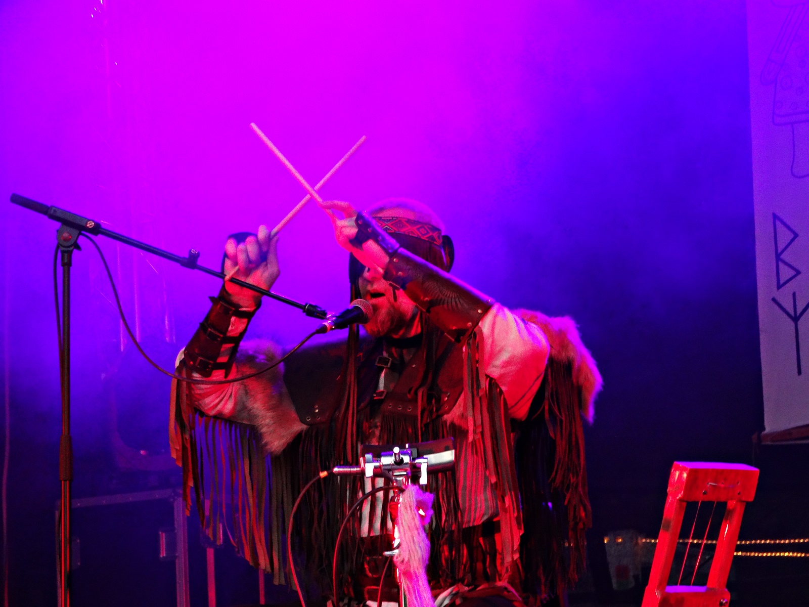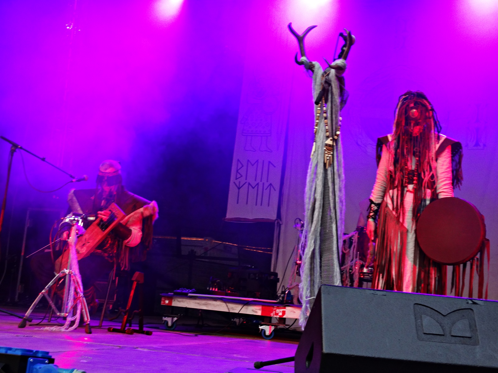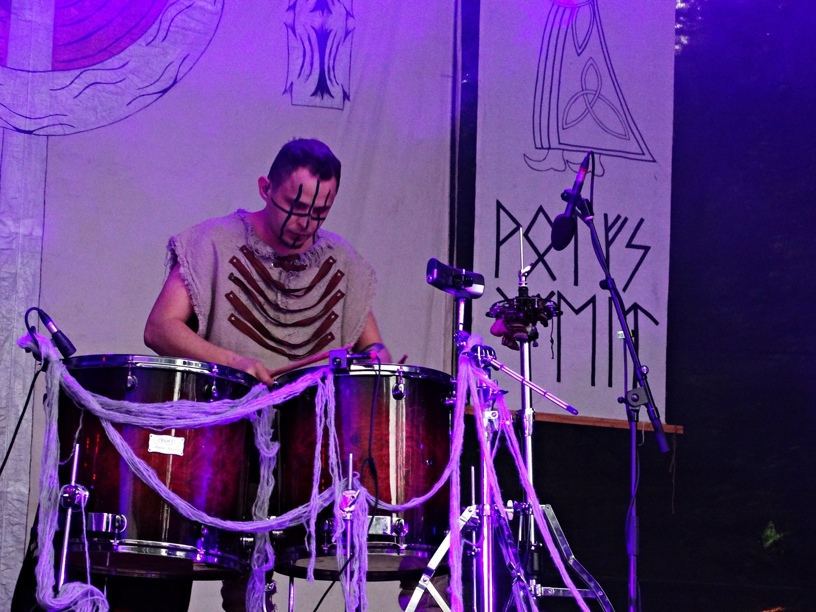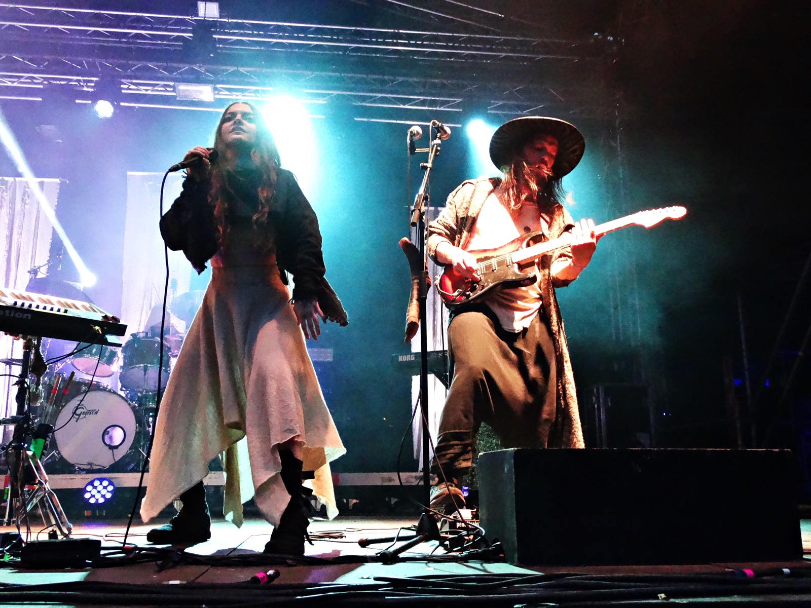 The last band from the pagan village this day was Nytt Land, a Nordic folk band from Siberia composed of two members, husband and wife, who, after signing their last two albums with Napalm Records, have been gaining considerable prominence at various folk and pagan festivals across Europe. The music can be considered shamanic, ritualistic, and hypnotic. Vocalist Natalya even ventures into throat singing while playing frame drums.