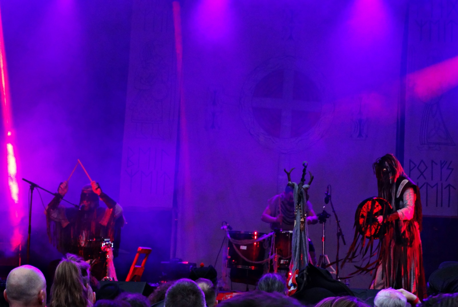 They began the concert with “Solsagan” from the 2010 album Nifelvind, then went back in time with “Nedgång” from 2007. They then moved on to the track “Ylaren” from 2020. A balanced setlist, playing both newer and older songs. “Blodsvept”, “Forsen”, “Skövlarens död”, “Den frusna munnen”, “Ormfolk”, “Trollhammaren”, “Nattfödd”, “Mordminnen”, “Skogsdotter”, “Under bergets rot”, “Mask” and “Midvinterdraken” were some of the songs heard, which sometimes led to dancing and moshing among the public.